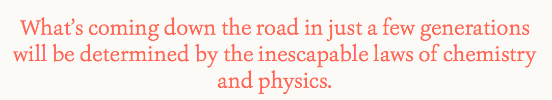 There is some reason for hope. Numerous European Union countries including Germany, and several U.S. states such as California, are making steady progress toward decarbonizing their economies. China is doing a lot more lately, though far, far more is needed. Sizeable segments of the private sector — including tech giants like Google, Apple, and Microsoft — are choosing clean energy solutions. But without large-scale coordinated action on many levels across government, academia, and the private sector, our efforts to drastically cut emissions will fall far short of what chemistry and physics demand. The atmosphere and climate do not respond to hopes or aspirations.