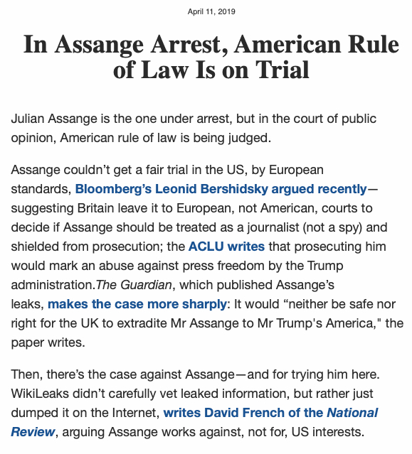 That passage is from a 2011 editorial, “Why the U.S. Shouldn’t Try Julian Assange.”