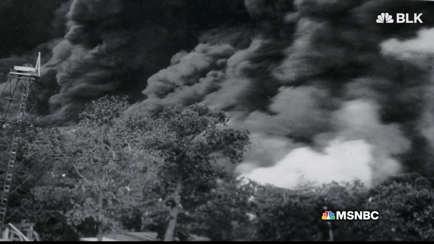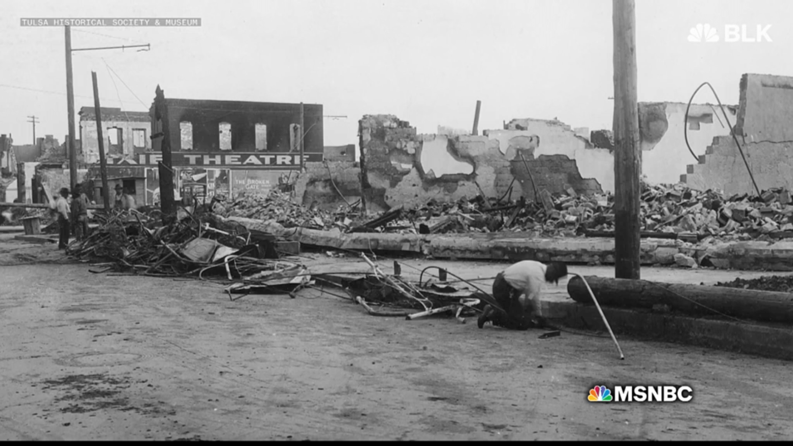 and the total destruction of 40 blocks of a Black residential neighborhood and business district called Greenwood and nicknamed Black Wall Street.