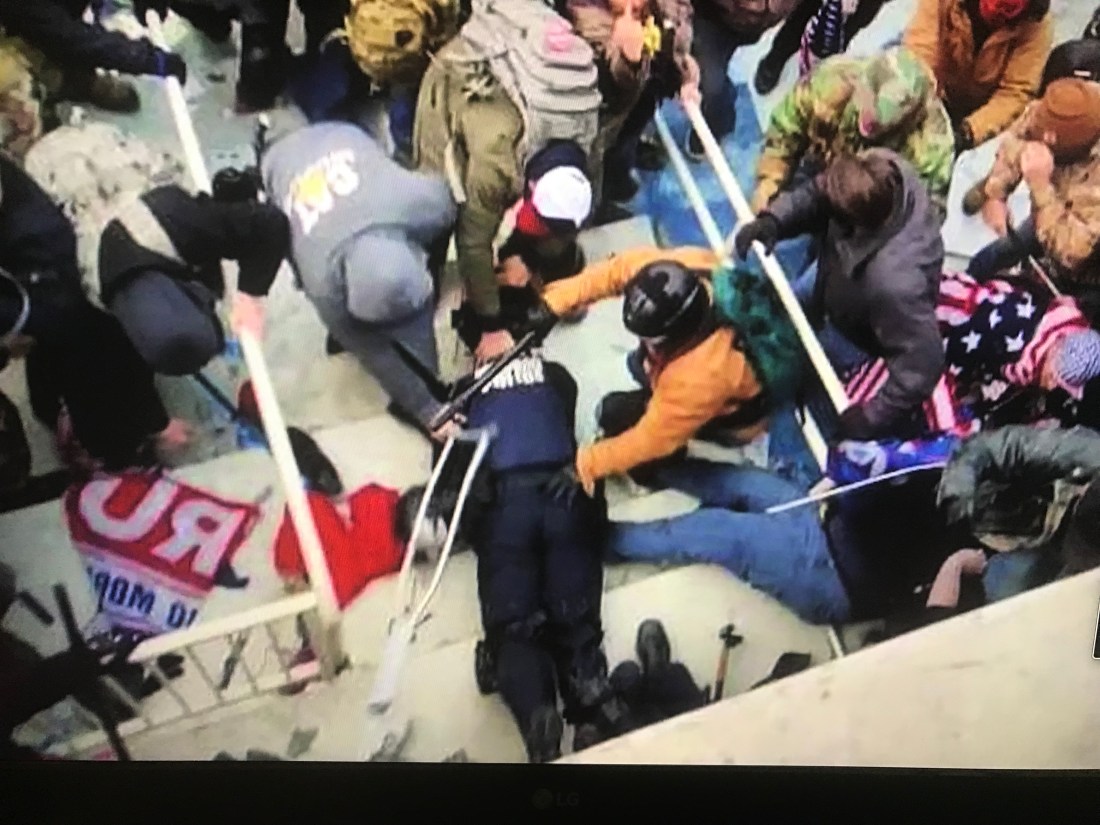 More than 100 police officers were bloodied, beaten and attacked by the rioters who overwhelmed authorities to break into the building.